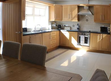 Large open plan kitchen, dining room, living room, WC and utility room. Well equipped kitchen. Dishwasher, washer/dryer, iron, ironing board etc.