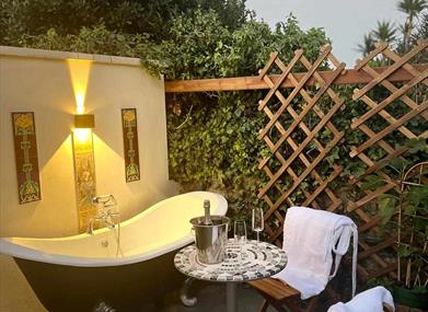 The Bath House is for those seeking a healthy relaxing stay with the sole use of the Spa Garden.Treating yourself to an Infrared sauna session which has numerous health benefits on its own but when followed by the use of the shower or the beautiful ice cold cast iron bath in the garden can have even greater improvements to your health. and well being.