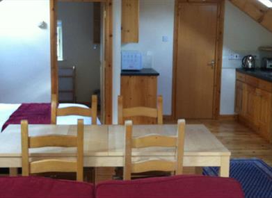 Cherryhill Lodge is a family run self catering apartment in the scenic Tullybrannigan area of Newcastle, literally at the foot of the Mournes. This luxury apartment sleeps three (as well as having a fold-out bed) and full kitchen facilities with a balcony opening from the sitting room to give spectacular views of the mountains in the evening sunshine. Accessed from an external wooden staircase, this self catering apartment is perfect for a relaxing getaway.