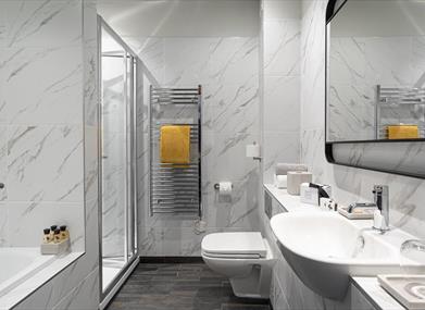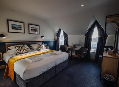 All rooms are thoughtfully designed with a contemporary theme, featuring local photography to introduce our guests to the surrounding area. Each guest room boasts a unique shape and size, paying homage to the original building's design and contributing to its distinctive, 'quirky' layout.
