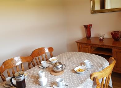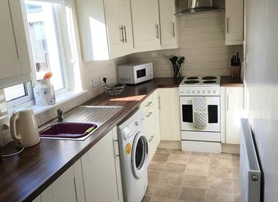 The newly fitted fully equipped kitchen provides full size cooker, microwave, fridge-freezer, washing machine, welcome pack of tea, coffee, sugar, milk, butter, eggs, bread and a choice of cereals.