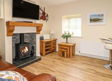 For those quiet evenings when you have spent all your energy walking around the rolling hills, you can look forward to cosying up on the sofa in front of the woodburning stove and the Smart TV.