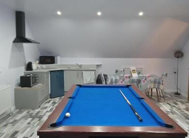 Great location for hikers/walkers and those wanting to explore the Mourne Mountains and also Tollymore Forest Park is only a 10 minute drive away which ideal for those wanting to visit the Game of Thrones locationsLyza's Loft has 2 rooms. One which is a large spacious ensuite bedroom with 1 double bed and 2 single beds and the other room is a large spacious kitchenette with a dining table, pool table and a sofa bed. There is ample room to sleep 6 to 8 people.
