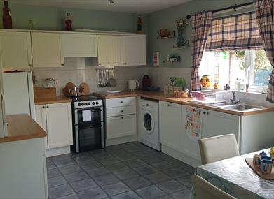 Bathroom downstairs and shower room upstairs. Cosy sitting room with open fireplace and Freeview TV, DVD player and music centre. Well equipped kitchen which opens onto the back garden and drying green.