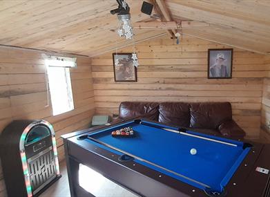 The games room houses a pool table, which also changes into air hockey, and a jukebox with LED surround lighting, a great space for the kids or adults to relax in and just have some fun.