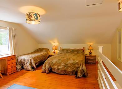 Crotlieve, Rostrevor Holidays. 1 Bedroom Cottage.Based on the shape of a barn that used to stand in its place, Crotlieve cottage is a 2-storey building at Rostrevor Holidays. Enter through the door and walk up the white stairs to your large spacious bedroom, with a comfortable double bed. A seating area as part of the bedroom allows you to relax and read a book, or watch some TV.