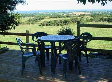 At the front of the cottage is the walled orchard garden - great for picnics and playtime- with fruit trees, shrubs, lawn and a wooden deck with a wooden table and benches for meals with a view of the Irish Sea. There is also plenty of parking space just outside at the back.
