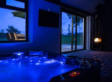 There is a private hot tub house that seats 6 people with fridge, wood burning stove and bath robes/slippers provided. Sliding glass doors open out to a patio with outside seating and large lawn. A fully equipped play park will keep the kids entertained while you enjoy a BBQ looking out over the spectacular views or toast marshmallows over the fire pit.