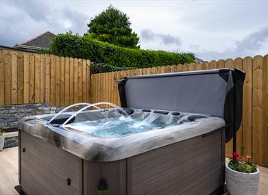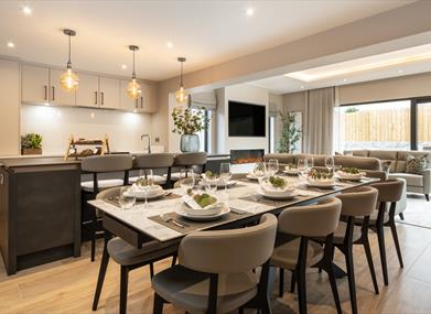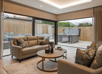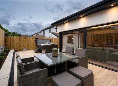 For entertainment, 4k TVs are strategically placed in each bedroom, and a 65-inch TV adorns the main living area—providing all major streaming services and Freeview channels along with online gaming and music services. Sink into our plush leather sofas and chairs and enjoy our state-of-the-art LED landscape fireplace. Step outside into an extended living area, to enjoy our luxury 6-person, 100+ jet spa hot tub - the perfect place to relax after your day's adventures. There's also outdoor seating for 8 people with a glass-topped table perfect for enjoying food cooked on the large Char-Broil gas barbecue.