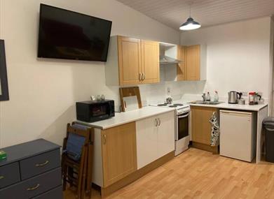 This one bed studio apartment has a fully equipped kitchen, comfortable sitting area with TV and modern shower room. Access to washing machine and tumble drier. Large secure enclosed yard for safe storage of bikes, kayaks and canoes.