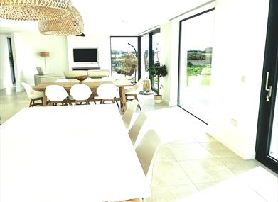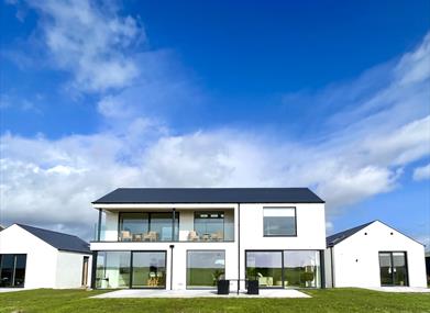 Sleeps up to 10 people. Large luxury contemporary and open plan beach house with direct beach access set upon 1.3 acres of land. Views from every room - Beach, Mountain, Castle views. Set upon stunning scenery overlooking Carlingford Lough with beach access. Beds and bedrooms can be adapted in a few ways to accommodate different guest types.