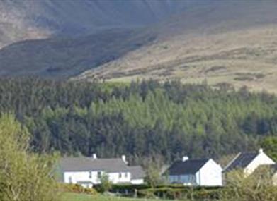 Downstairs there is a sitting room with an open fire and off it dining room seating eight people; it has fantastic views up the valley from a large picture window. French doors open out on to a private garden and patio with barbecue and picnic bench. The cottages are all WiFi enabled with Freesat TV, video and DVD; baby cots, stair gates and high chairs are also available. Walkers can reach the mountains from the cottages using our own path and quiet country road or take advantage of the local Shuttle bus drop off service that operates in the Mourne area. For cyclists, there are bicycles for hire on site with storage and wash facility for your own bike.