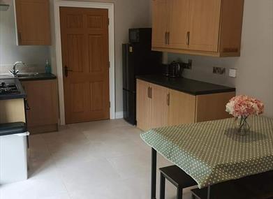 The well equipped kitchen has a Hob, Oven, Fridge, Freezer, Microwave, Kettle, Toaster and a Washing Machine. We provide a continental breakfast to help start you off. Double patio doors open out to a private stoned patio area with outside seating for you to relax on. This outside area is enclosed with a locked gate making it safe for small children to play in.