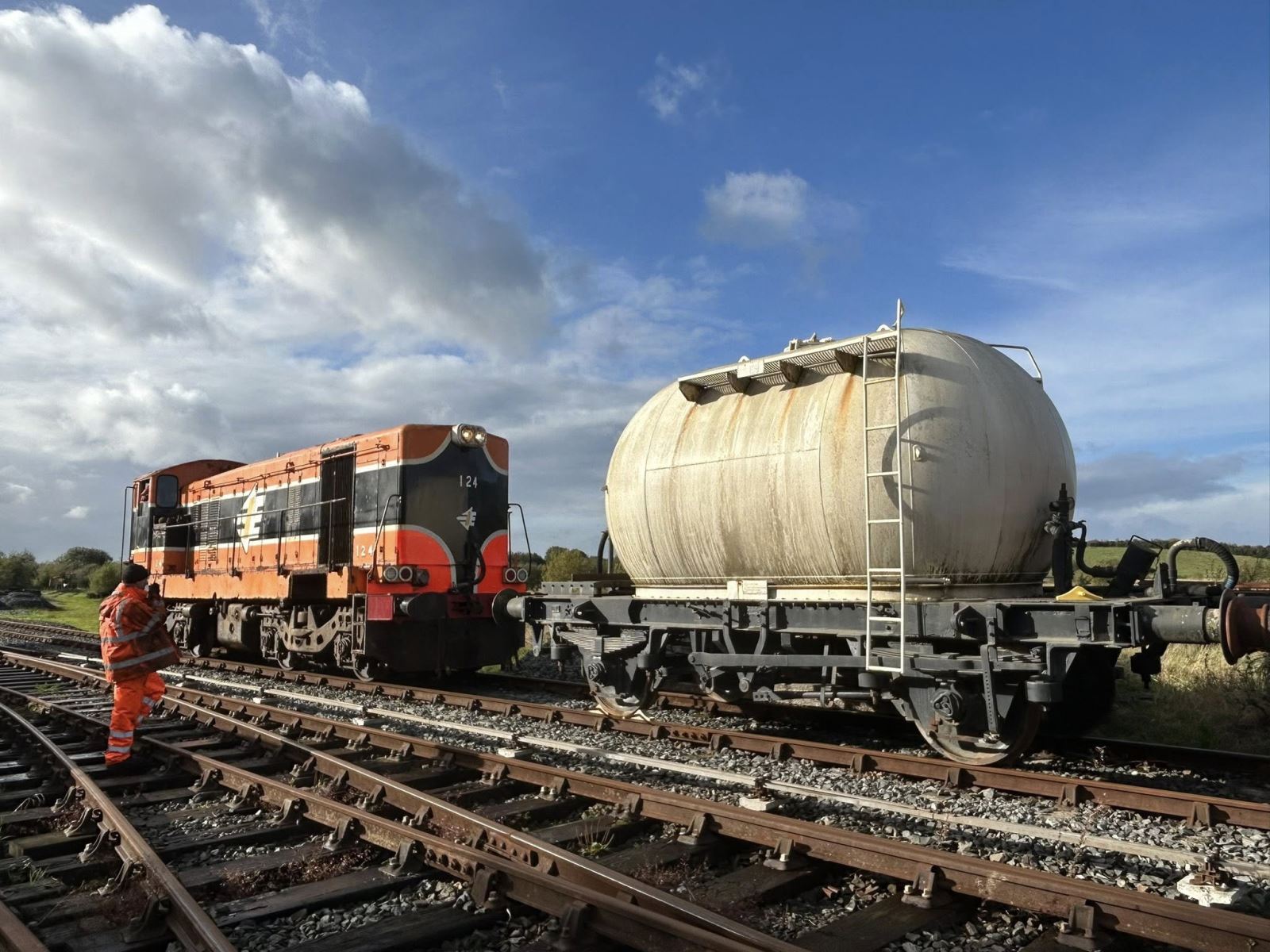 The newly arrived wagon, No. 25199, built in 1972 at Inchicore Works in Dublin, is the very last of its class of 150 vehicles. For over 30 years, the distinctive “bubbles” were a familiar sight across Ireland, north and south, hauling cement until the traffic ended in 2009 and every known example was scrapped. Enthusiasts believed the entire class was lost forever, until now.