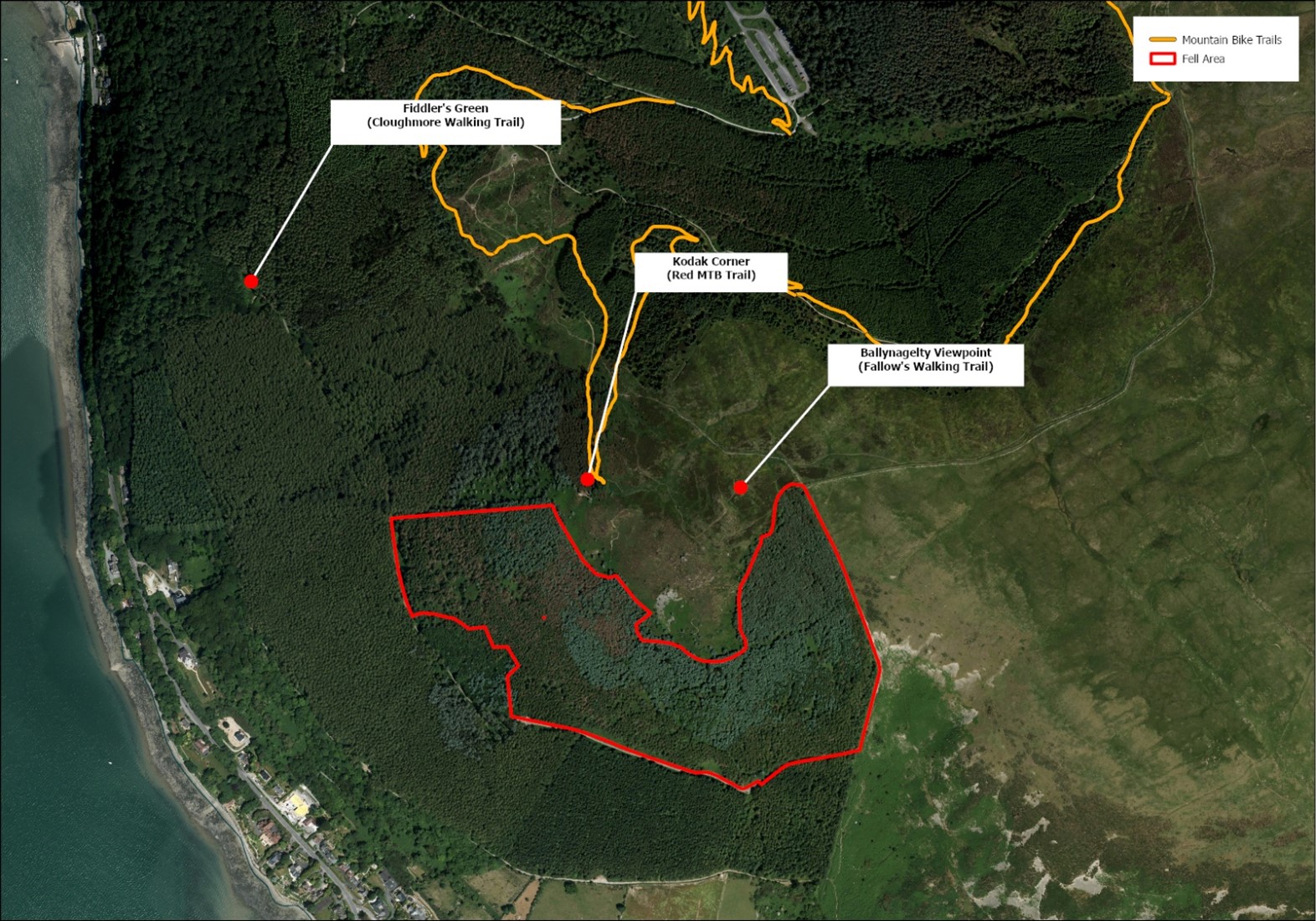 Machinery will be working to remove selected trees then stack these close to the road verge. Upon completion, haulage lorries will be operating in both directions on the Mourne Way to remove the harvested timber.
