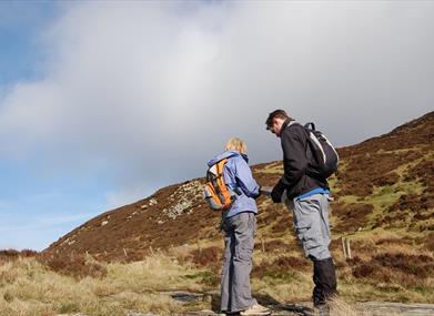 Turn right onto a busy road for about 250m before veering left down a track. After about 500m, turn right at a T-junction, then look out for a wooden gate on the left. You now pass around several fields to reach the Kilcurry River, which is crossed via a metal footbridge. Turn right on the opposite bank, then veer left between fields. The path turns into a track and brings you to a road at the edge of Forkhill. Turn right and continue through the centre of the village, then turn right again to reach the B134 road. Did You Know? Just south of Jonesborough the route passes a mountain saddle known as Moyry Pass, or the 'Gap of the North'. This was once a major thoroughfare between the provinces of Ulster and Leinster. The pass is guarded by Moyry Castle, which was built in 1601, and can be visited in a short detour from the route. Section 4 Forkill to Slieve Gullion Courtyard Centre (9.3km) (Please note this section of the Ring of Gullion Way is closed while an alternative route is being developed) Did You Know? On Slieve Gullion's summit plateau lies Calliagh Berra's Lough. The pool is named after a woman famed in local folklore for bewitching the giant Finn McCool. She tricked him into diving into the lough, and when he surfaced his hair had turned completely white. Legend has it that the same fate will befall any person who swims in the waters today.