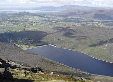 This fantastic circular walking route follows the Mourne Wall to the summit of Slieve Binnian (747m), traverses between the spectacular South and North Tors before descending along a track past the Blue Lough, Annalong Forest and back to the car park.Start Point: