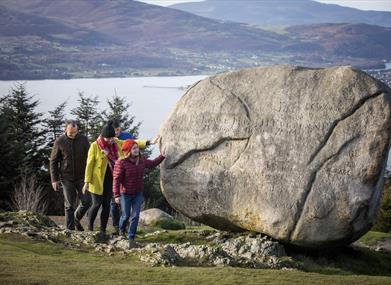 Situated in the stunning location of Kilbroney Forest Park, and overlooking Carlingford Lough, the circular Cloughmore Trail leads to the gigantic, 50 tonne granite boulder.