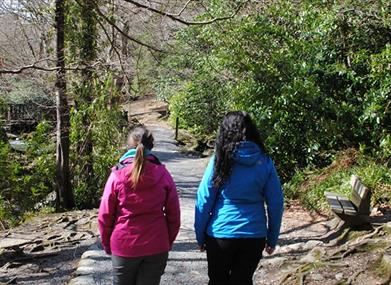 Follow the red waymarker arrows from the car park. Down the Azalea Walk towards the Shimna river to the Hermitage this trail passes through both conifer and broadleaved woodland before crossing the Shimna at Parnell’s bridge. Dramatic views of the Pot of Legawherry can be seen from the trail. There is an optional spur to the White Fort Cashel before following the Spinkwee River downstream, past the cascades and back to the Meeting of the Waters. The trail proceeds through conifer plantations, past the duck pond and crosses the Shimna River over the Old Bridge, returning to the car park via the Green Rig. Trail Features Steps, gullies, tree roots Moderate gradient (1:4) Generally undefined edges Overhanging branches Broken surface material Some rest areas at irregular intervals Way-finding markers at trail junctions Distance to go Markers at trail junctions These walks are situated in a working forest environment and may be subject to diversion and closure from time to time. Up to date information is available on the Forest Service web site - link below.