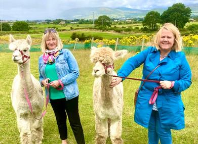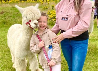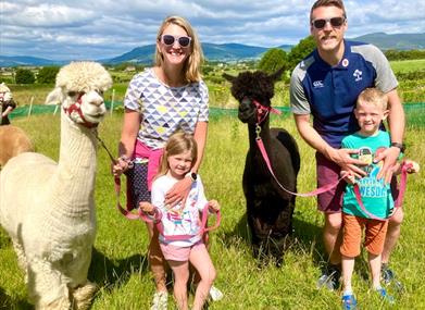 Enjoy a Cranfield Alpaca Field Walk, which are absolutely perfect for families with children of all ages. Take one of our gorgeous alpacas for a walk around the paddocks in our field with stunning views of the Mourne Mountains and Carlingford Lough.
