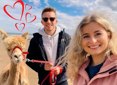 A special valentines alpaca experience, fall in love with our gorgeous, cuddly alpacas and indulge in the very finest award winning local artisan 'Neary Nogs' chocolate – what's not to love! After your romantic stroll to the beach with your sweetheart – or with one of our beautiful boys, perhaps Handsome Hugo or Cuddly Coco! Once we get back, meet and feed the rest of the gorgeous gang, then you can enjoy a luxurious, rich dark hot chocolate with fresh cream and marshmallows, chocolate strawberries and some delicious chocolate to take home with you to indulge in later!