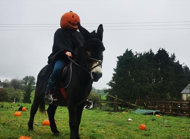 What to Expect: - Meet and Greet with Donkeys in Costume: Start your adventure by meeting our adorable donkeys, all dressed up for Halloween! Children will have the chance to brush and interact with these gentle animals, making new four-legged friends in a fun and safe environment. - Halloween Hunt: Hunt for mini pumpkins with your donkey companions!