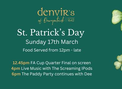 St. Patrick's Weekend at Denvir's Downpatrick is set to be one to remember with everything from live music and great food through to the Gold Cup, Six Nations Rugby and FA Cup Quarter Finals.
