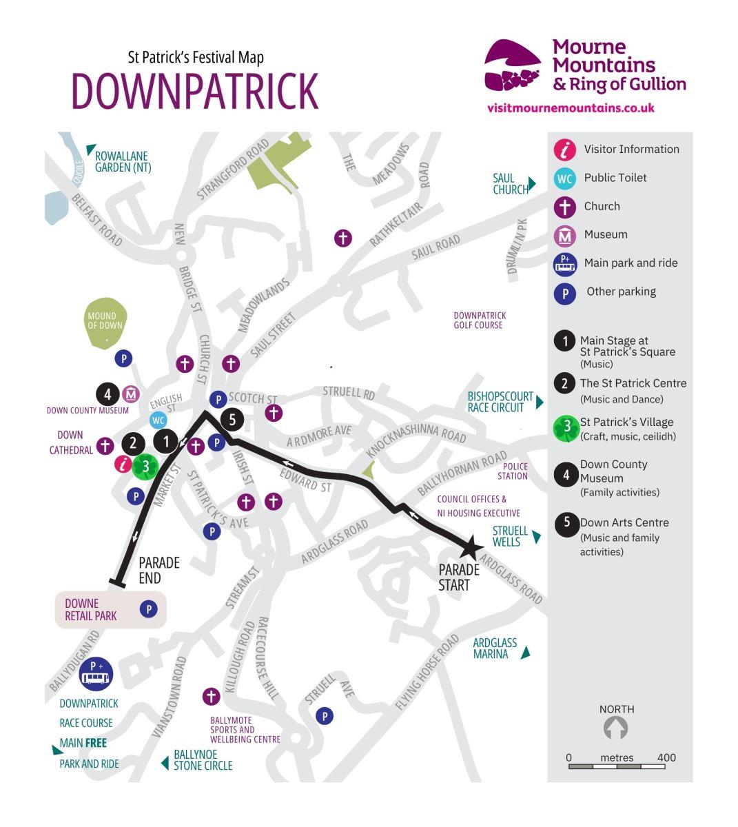 Map of St Patrick's Festival in Downpatrick - click here to download a copy