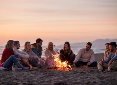 Once back on shore, you'll be greeted by the smells of tasty BBQ cooking (vegan and veggie options available), and while you change, we'll get the camp fire blazing to warm you up too. Once all that is sorted, gather round the fire and grab a few complimentary beers / glasses of prosecco (alcohol free available too) , and unwind and chat with your tasty grub on hand. Sit on the sand and just CHILL.