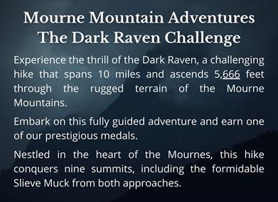 Experience the thrill of the Dark Raven, a challenging hike that spans 10 miles and ascends 5,666 feet through the rugged terrain of the Mourne Mountains.