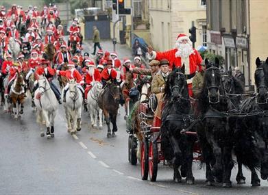 At 12 noon the Santas will mount up and follow the "Real Santa" in his magnificent carriage.