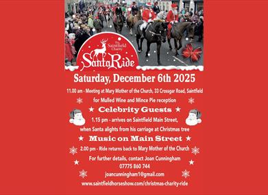 Some changes have been made this year which will make the Ride even more exciting. This spectacular Christmas Extravaganza has become one of the most eagerly anticipated on the Christmas calendar. Riders from all over the province dressed up as Santa, will converge on the historical market town of Saintfield to take part.